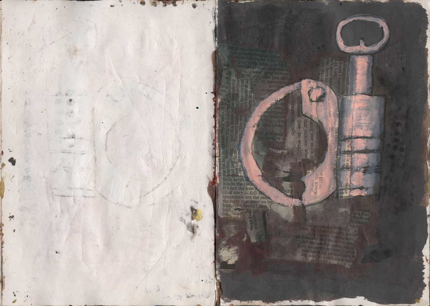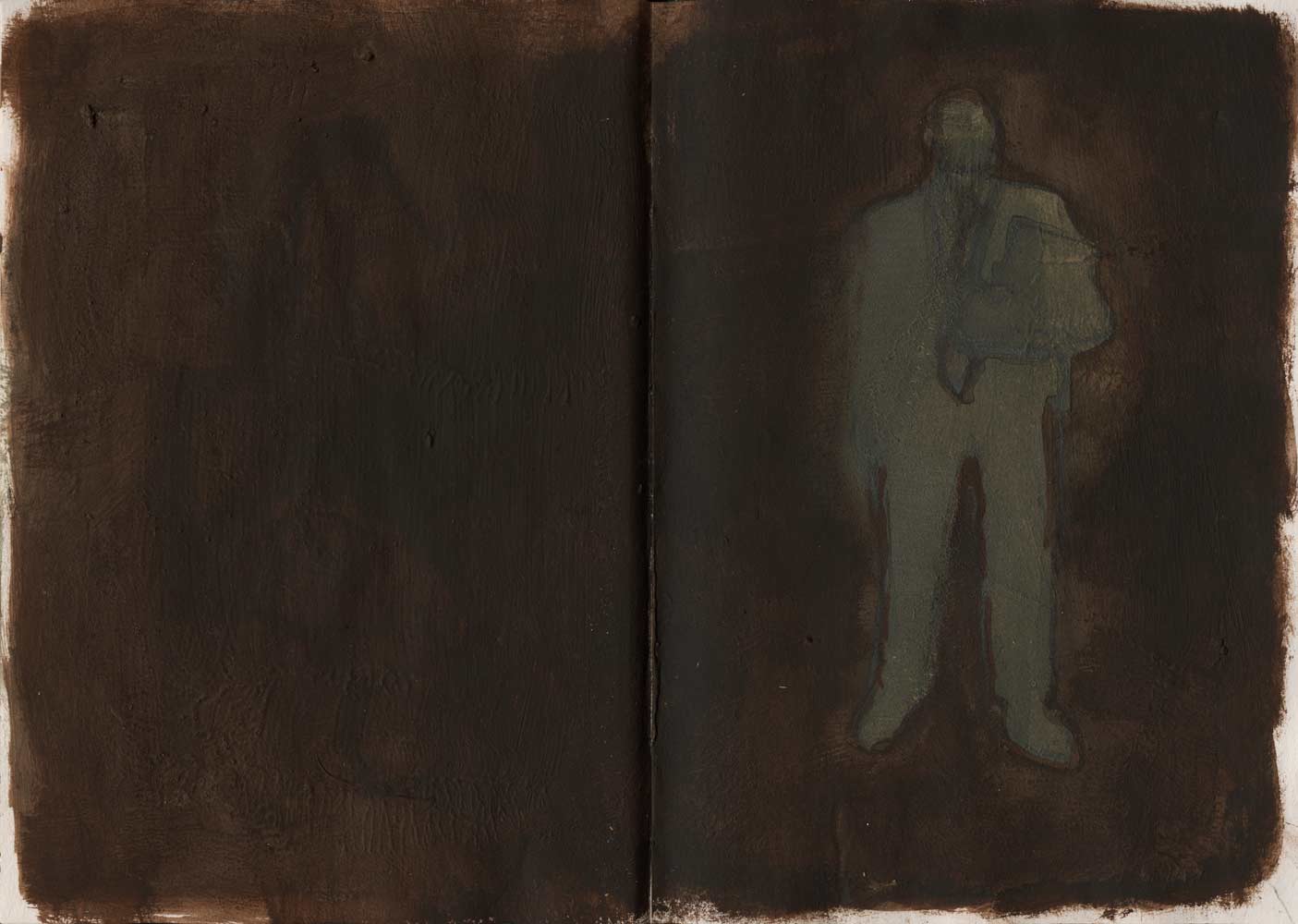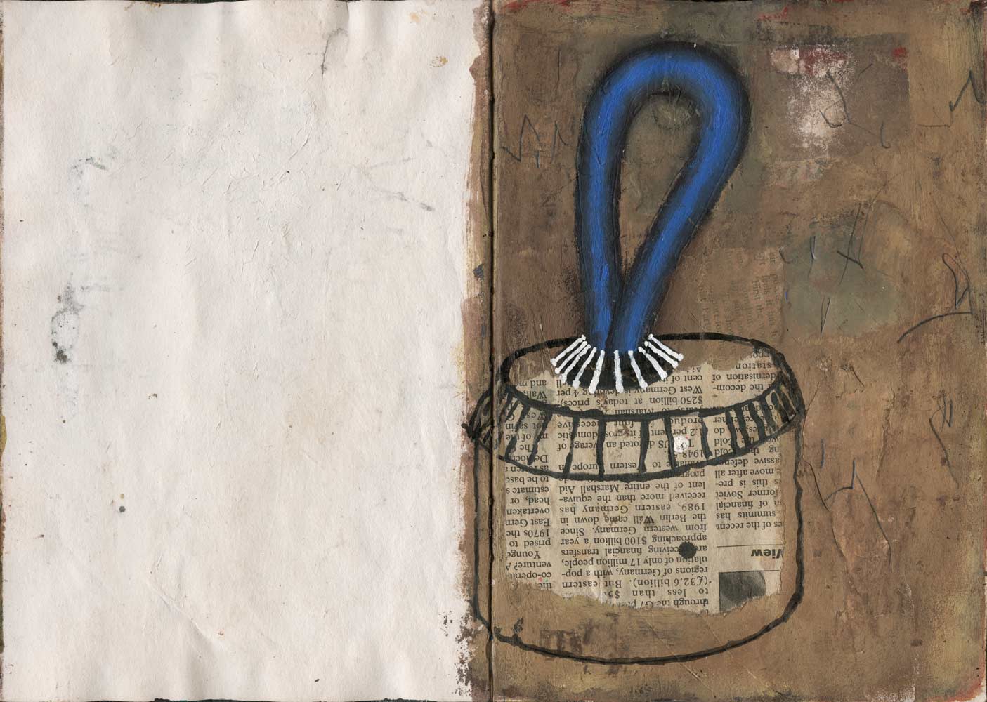 Graphite, ink, colour pencil, acrylic, saw dust, coffee and collage on paper
