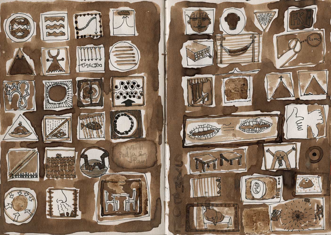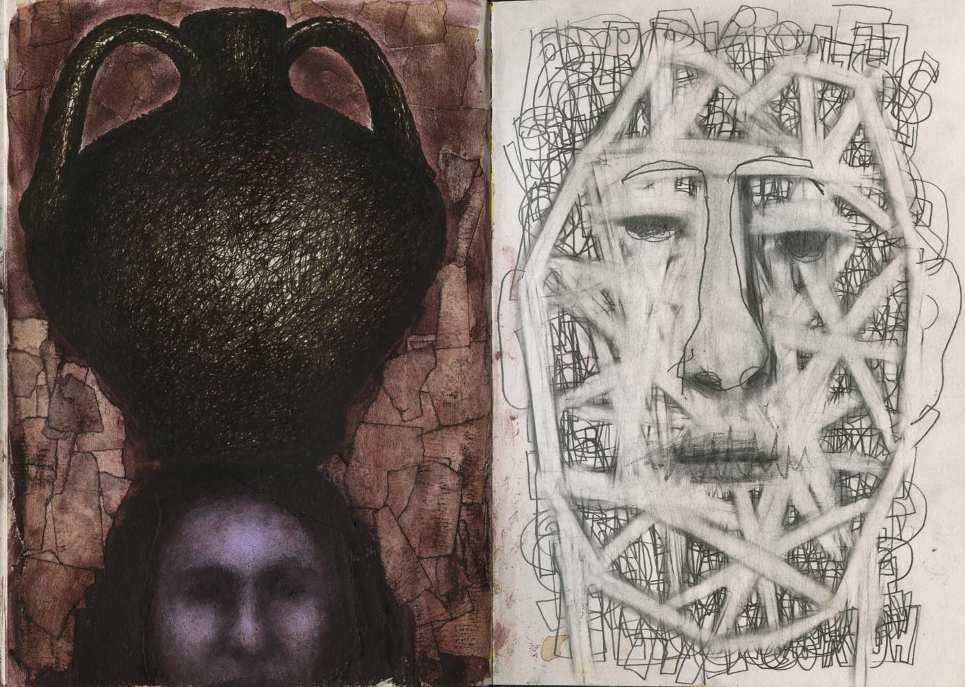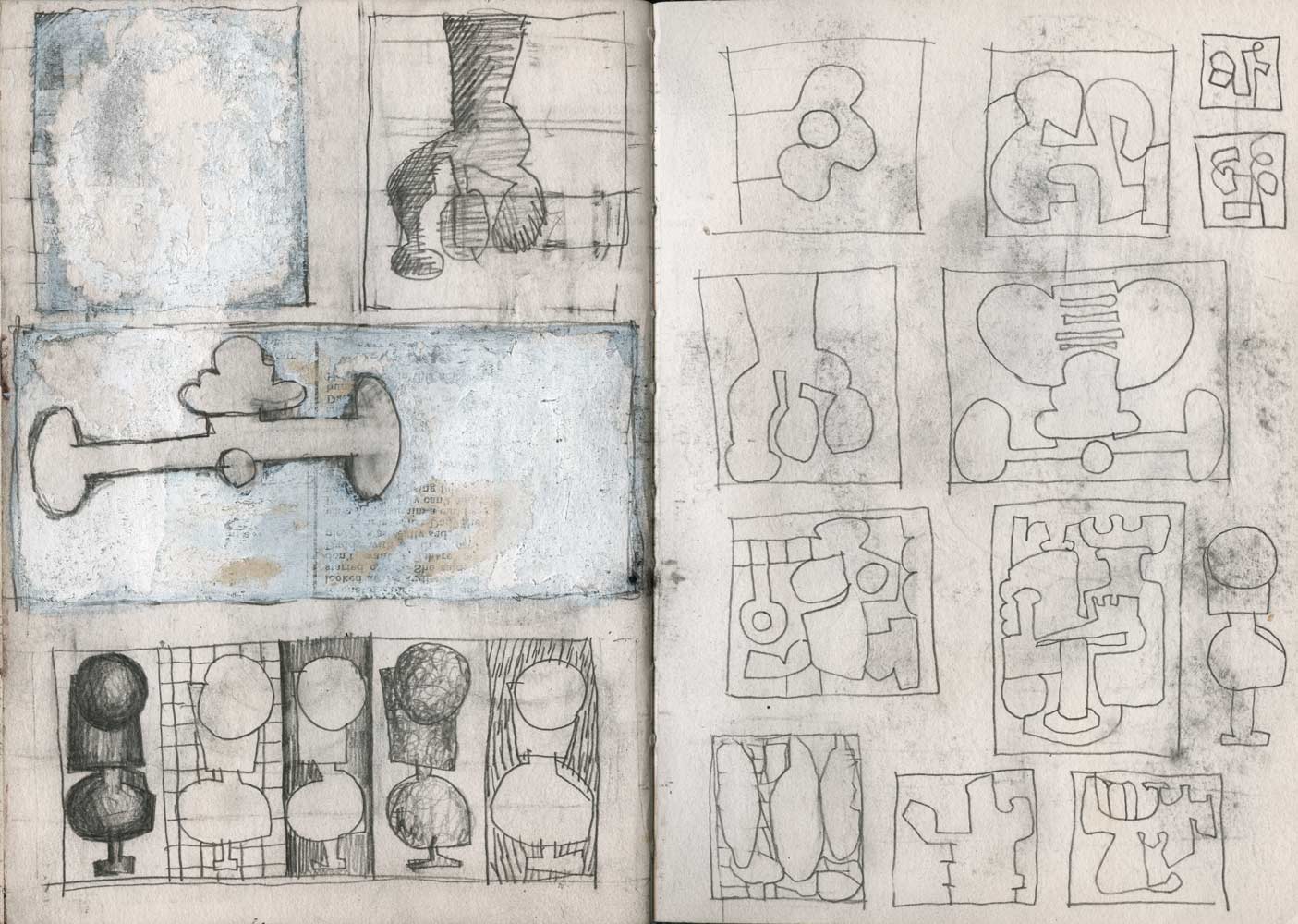 Line drawings, mixed media sketches and studies